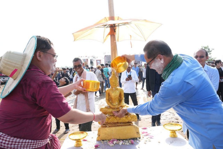 ឯកឧត្ដមបានបន្ដ លេីកឡេីងទៀតថា កម្ពុជាទាំងមូល ព្រមទាំងរាជធានី ខេត្ត ស្រុក ក្រុង បានរៀបចំពិធីអបអរសាទរសង្ក្រាន្តឆ្នាំថ្មី ក្រោមប្រធានបទ “ញញឹមសាទរសង្ក្រាន្តឆ្នាំថ្មី” បានគ្រប់ទីកន្លែង ព្រោះប្រទេសកម្ពុជានៃយេីង មានសុខសន្ដិភាពពេញលេញ និងមានការអភិវឌ្ឍន៍ប្រកបដោយចីរភាព។