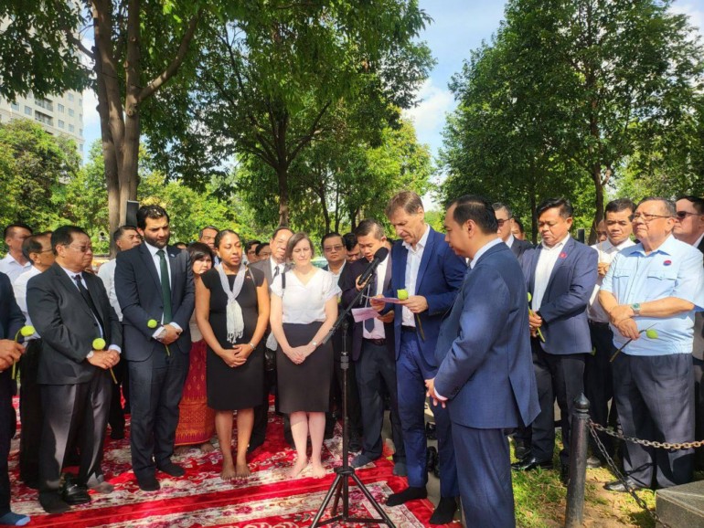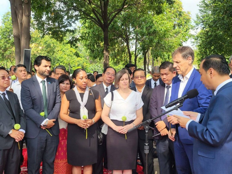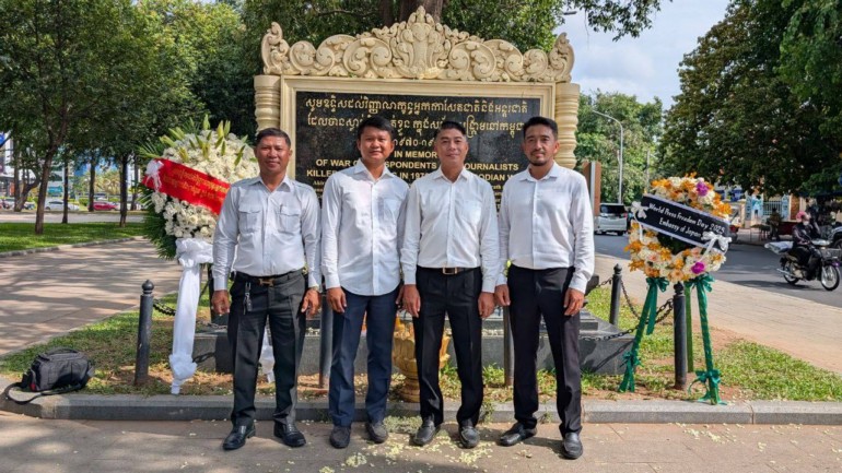 រាជធានីភ្នំពេញ ៖ នាព្រឹកថ្ងៃទី៣ ខែឧសភា ឆ្នាំ២០២៥ លោកបណ្ឌិត ហោ គន្ធា ប្រធានសមាគមអភិវឌ្ឍន៍វិជ្ជាជីវៈអ្នកសារព័ត៌មានកម្ពុជា ដឹកនាំប្រតិភូថ្នាក់ដឹកនាំសមាគម ចូលរួមគោរពវិញ្ញាណក្ខន្ធអ្នកកាសែតជាតិ និងអន្ដរជាតិ ដែលបានស្លាប់ និងបាត់ខ្លួន ក្នុងសម័យសង្គ្រាមនៅកម្ពុជា ឆ្នាំ១៩៧០-១៩៧៥ ក្រោមអធិបតីភាពដ៏ខ្ពង់ខ្ពស់ ឯកឧត្ដម នេត្រ ភក្ត្រា រដ្ឋមន្ត្រីក្រសួងព័ត៌មាន ក្នុងឱកាសទិវាសេរីភាពសារព័ត៌មានពិភពលោកលើកទី ៣២ នៅរាជធានីភ្នំពេញ ៕